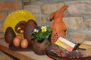 Gebrauchskeramik, Skulpturen, Bilder und Österliches können an diesem Tag besichtigt und erworben werden.